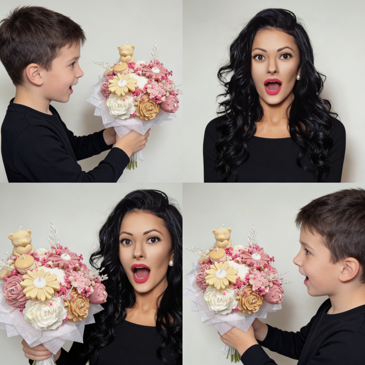 Buchetul Inimii Tale este un aranjament floral deosebit, realizat cu grijă din flori din ceară, conceput pentru a transmite emoție, rafinament și eleganță. Fiecare detaliu este atent lucrat, de la nuanțele delicate pastelate până la formele realiste ale florilor, creând un efect vizual spectaculos și sofisticat.