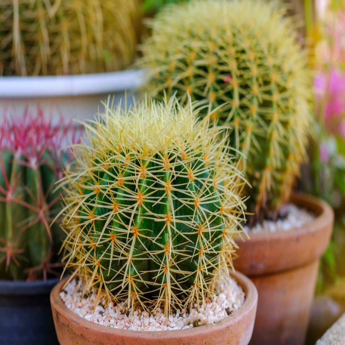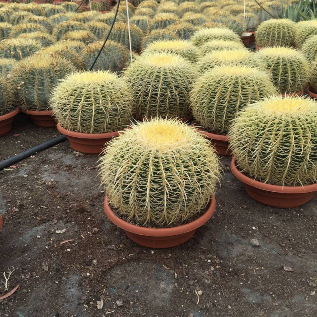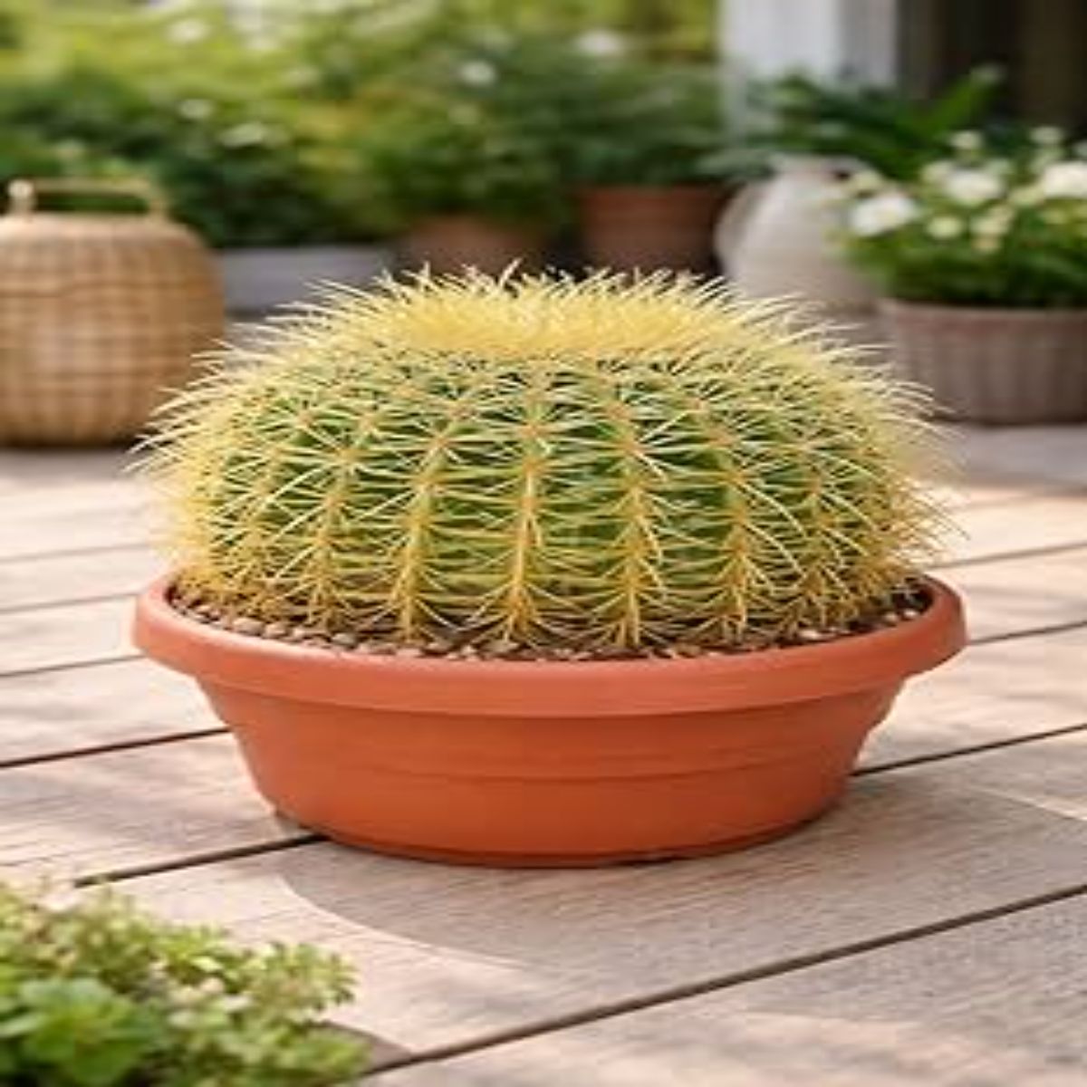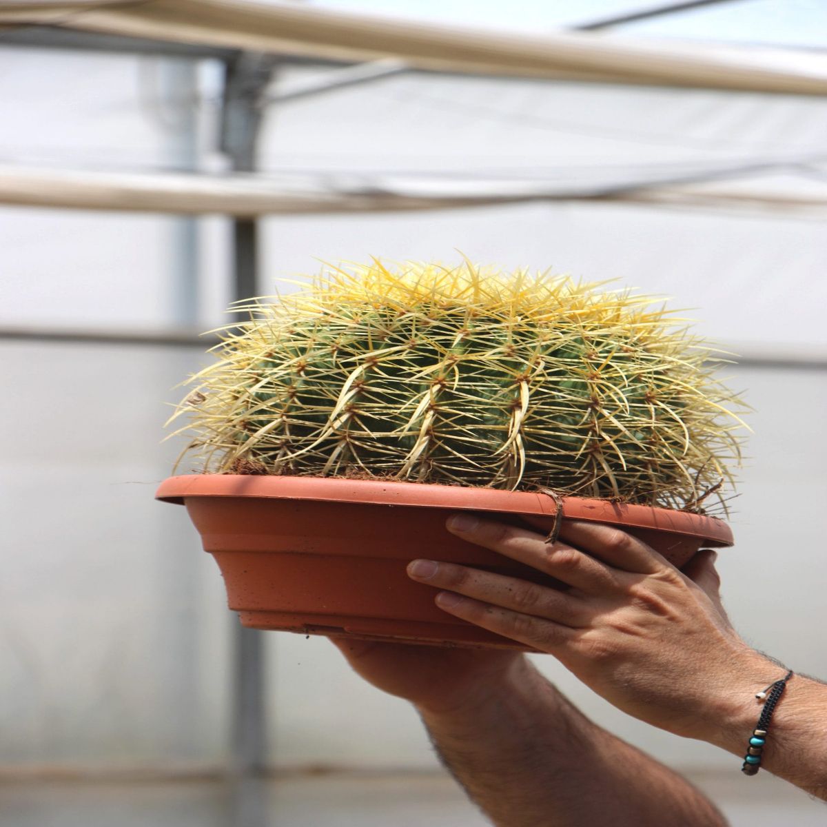 Cactus Echinocactus grusonii, cunoscut și sub denumirea populară de „cactus butoi de aur”, este o plantă suculentă spectaculoasă, apreciată pentru forma sa perfect rotundă și aspectul decorativ deosebit. Originar din zonele aride ale Mexicului, acest cactus impresionează prin culoarea verde intens a corpului și prin țepii săi galben-aurii, dispuși simetric de-a lungul coastelor pronunțate.