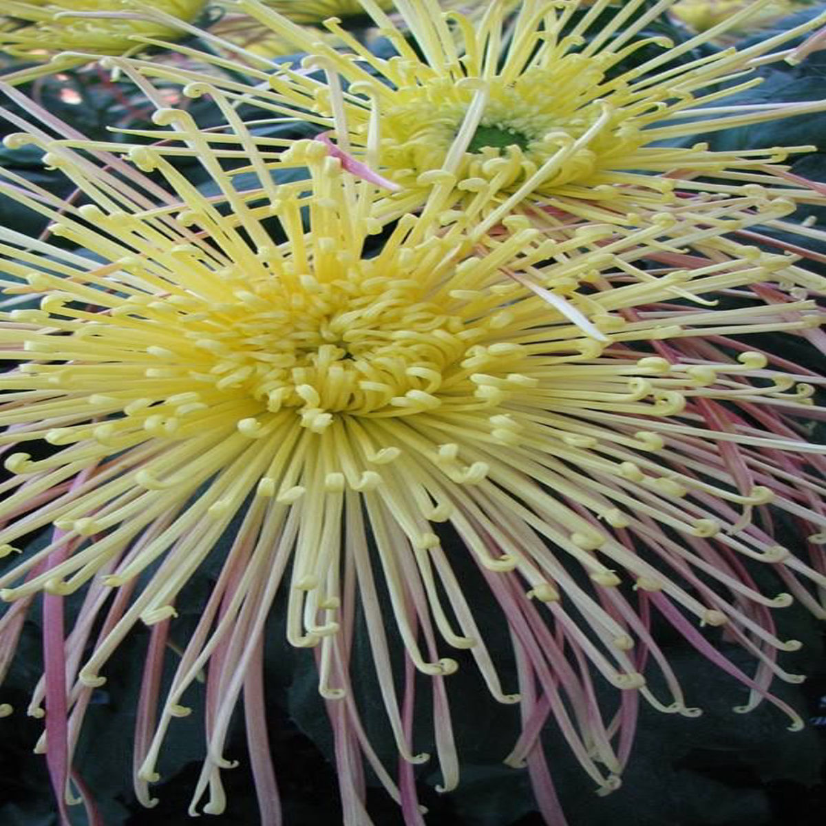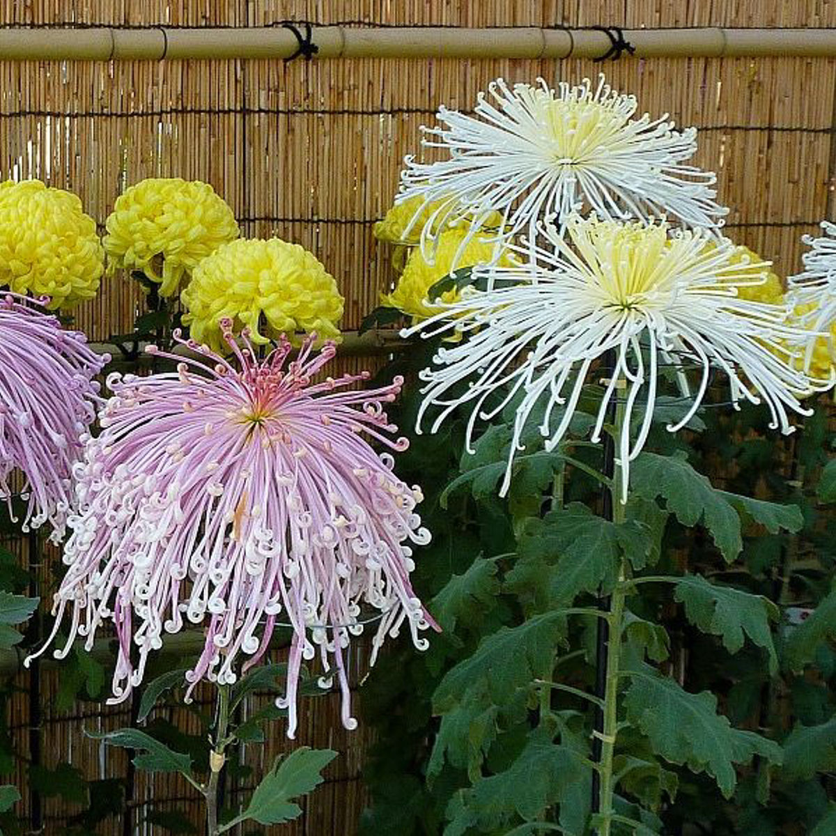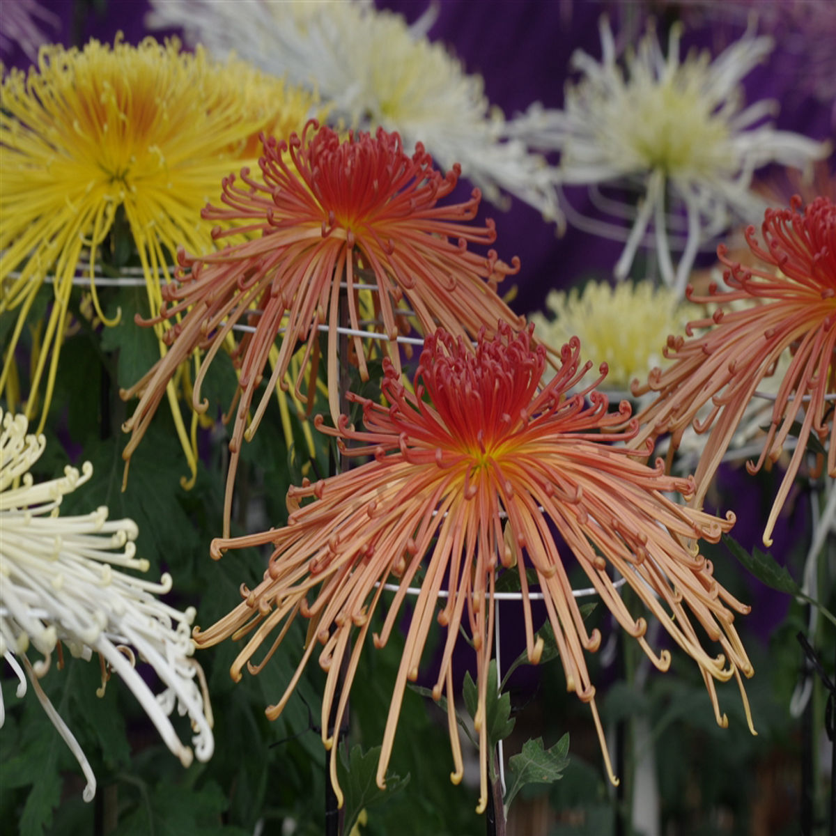 Florile sunt bogate, bine ramificate, cu petale subțiri și alungite, dispuse radial, în nuanțe vibrante (adesea combinații de galben, roșu, roz sau bronz, în funcție de cultivar). Perioada de înflorire este îndelungată, în special toamna, când aduce culoare și viață grădinilor sau teraselor.