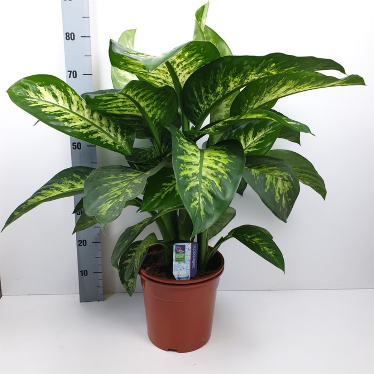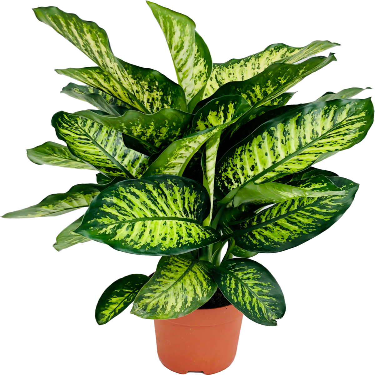 Dieffenbachia ‘Maroba’ este o plantă de interior tropicală, apreciată pentru frunzișul său bogat și aspectul decorativ elegant. Se remarcă prin frunzele sale mari, ovale, cu un desen spectaculos în nuanțe de verde intens și crem, care adaugă un plus de lumină și rafinament oricărui spațiu.