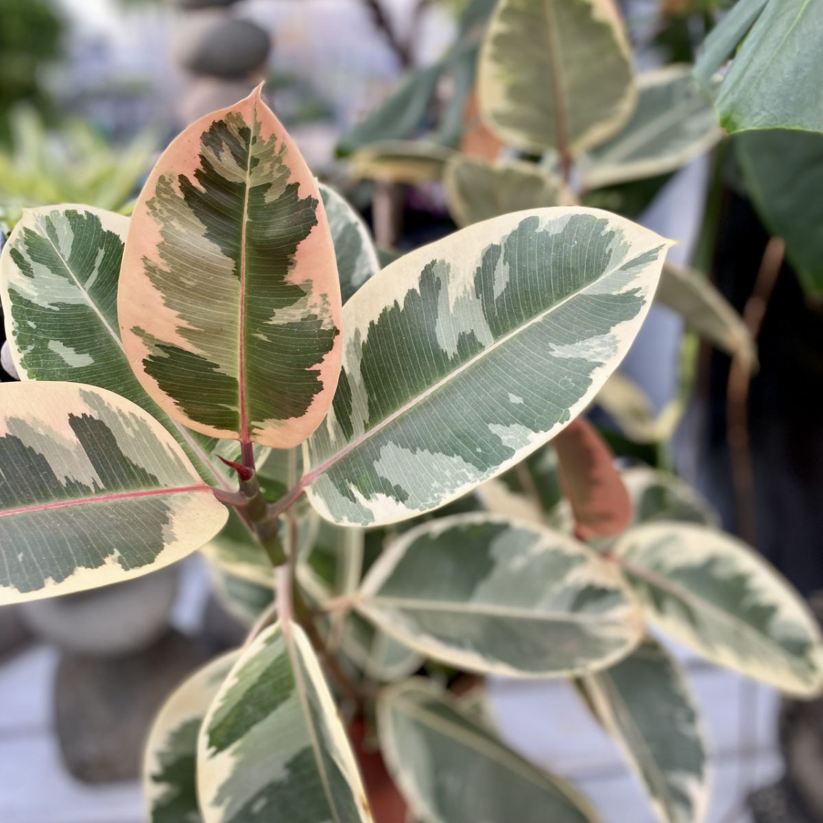 Ficus Elastica ‘Tineke’ este o plantă de interior elegantă și ușor de întreținut, apreciată pentru frunzele sale mari, lucioase, cu variații de verde și crem. Este o alegere ideală pentru a aduce un plus de prospețime și stil oricărui spațiu, fie că este vorba de living, birou sau hol.