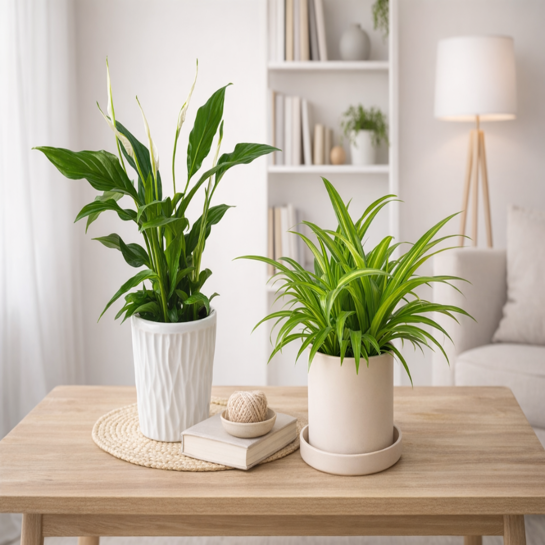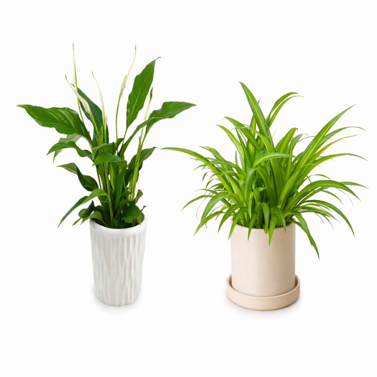 Pachet „Crinul Păcii și Planta Păianjen de Interior” aduce în casa dumneavoastră două plante deosebite, ușor de întreținut și potrivite atât pentru decorul interior, cât și pentru îmbunătățirea calității aerului. Crinul Păcii (Spathiphyllum) impresionează prin flori albe elegante și frunziș lucios, oferind un aspect rafinat oricărui spațiu. Planta Păianjen (Chlorophytum comosum) este cunoscută pentru rezistența sa și capacitatea de a elimina impuritățile din aer, având frunze lungi, arcuite, cu aspect decorativ.