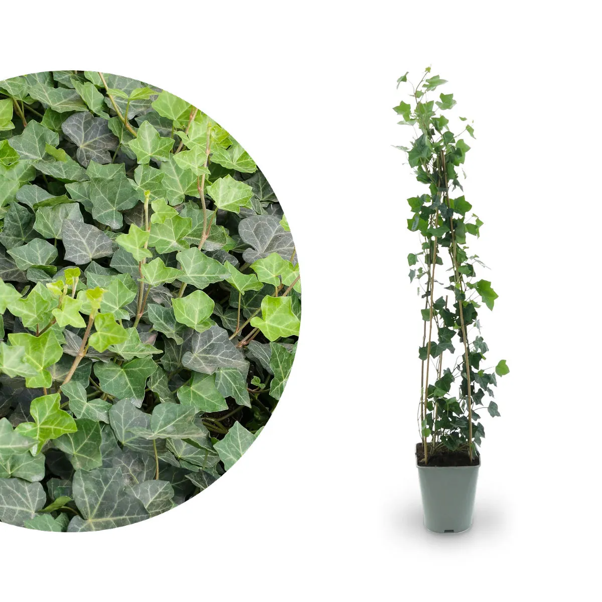 Pachet Hedera Helix (iedera) — înălțime aproximativă 90 cm. Ideal pentru înfrumusețarea spațiilor interioare și exterioare, acest pachet conține plante sănătoase de Hedera helix, cunoscute pentru frunzișul bogat și capacitatea de a crea zone verzi elegante rapid. Iedera este rezistentă, adaptabilă la diferite condiții de lumină și ușor de întreținut, fiind potrivită pentru apartamente, birouri, terase sau grădini verticale.
