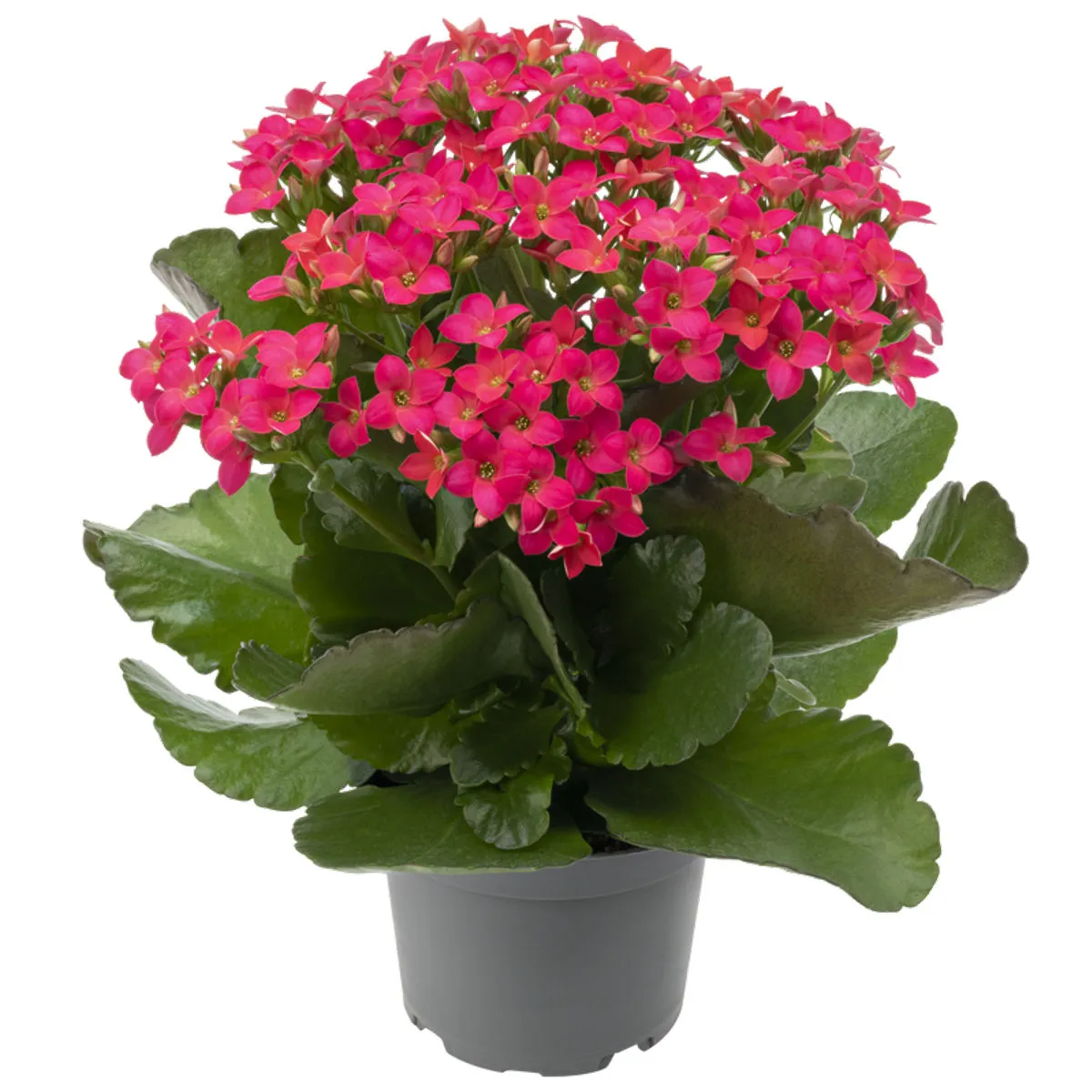 Kalanchoe mix: plantă suculentă apreciată pentru florile sale vii și frunzele suculente, robustă și rezistentă la condiții de iluminare variabile. Potrivită pentru ferestre luminoase; udare moderată, lăsați substratul să se usuce între udări.