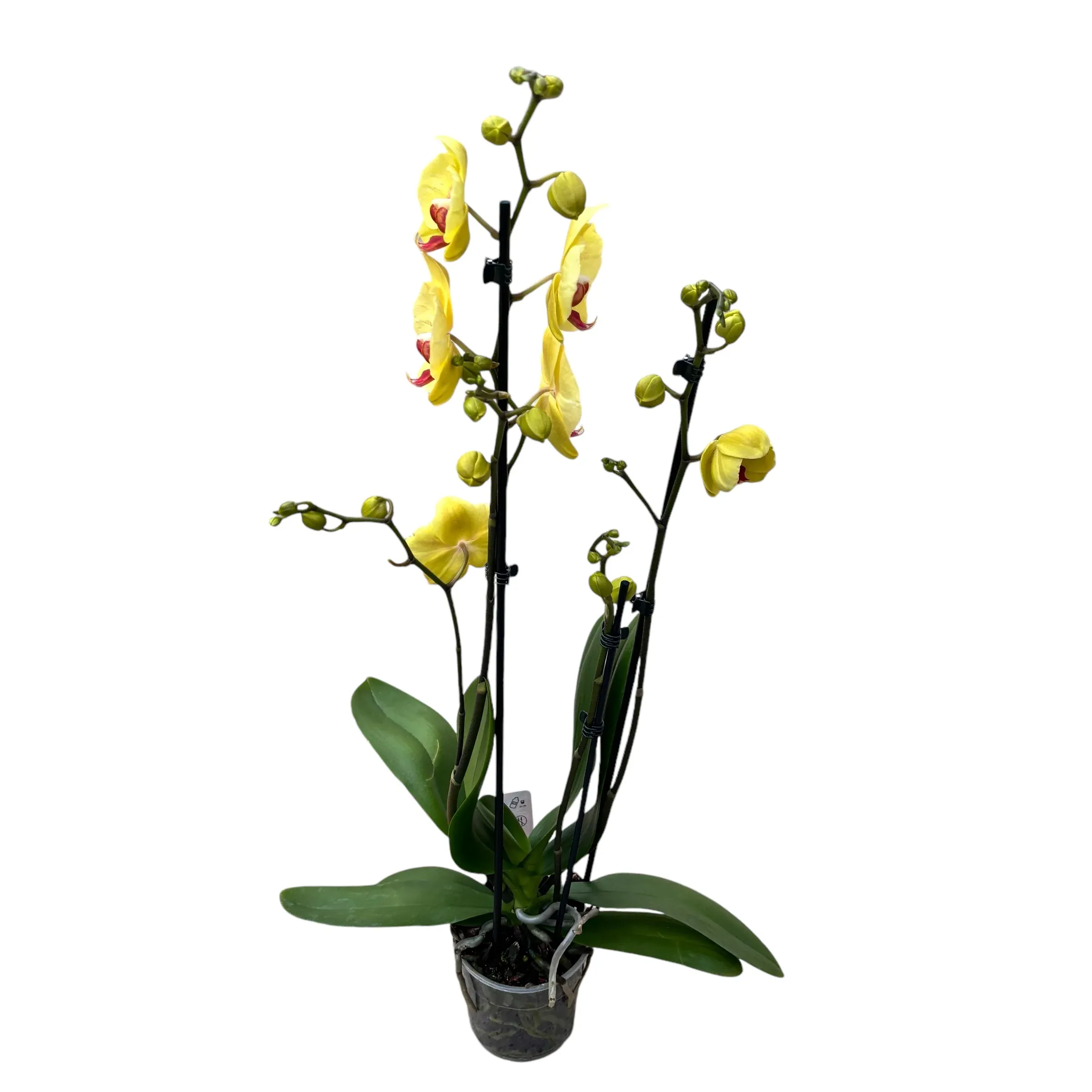 Phalaenopsis galben este o orhidee elegantă și rafinată, apreciată pentru florile sale spectaculoase, în nuanțe luminoase de galben, care aduc un plus de căldură și eleganță oricărui spațiu interior. Cu o înălțime de 40-50 cm, această plantă este ideală pentru decorarea locuințelor, birourilor sau spațiilor moderne.