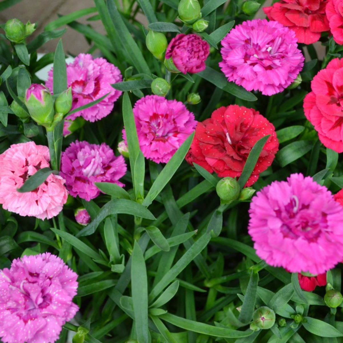 Varianta „mix” oferă o paletă variată de culori – de la alb și roz delicat, până la roșu intens sau combinații bicolore – fiecare floare având petale fin zimțate, cu un aspect elegant și ușor romantic. Florile sunt numeroase și apar în valuri pe parcursul sezonului cald, transformând planta într-un adevărat punct de atracție.