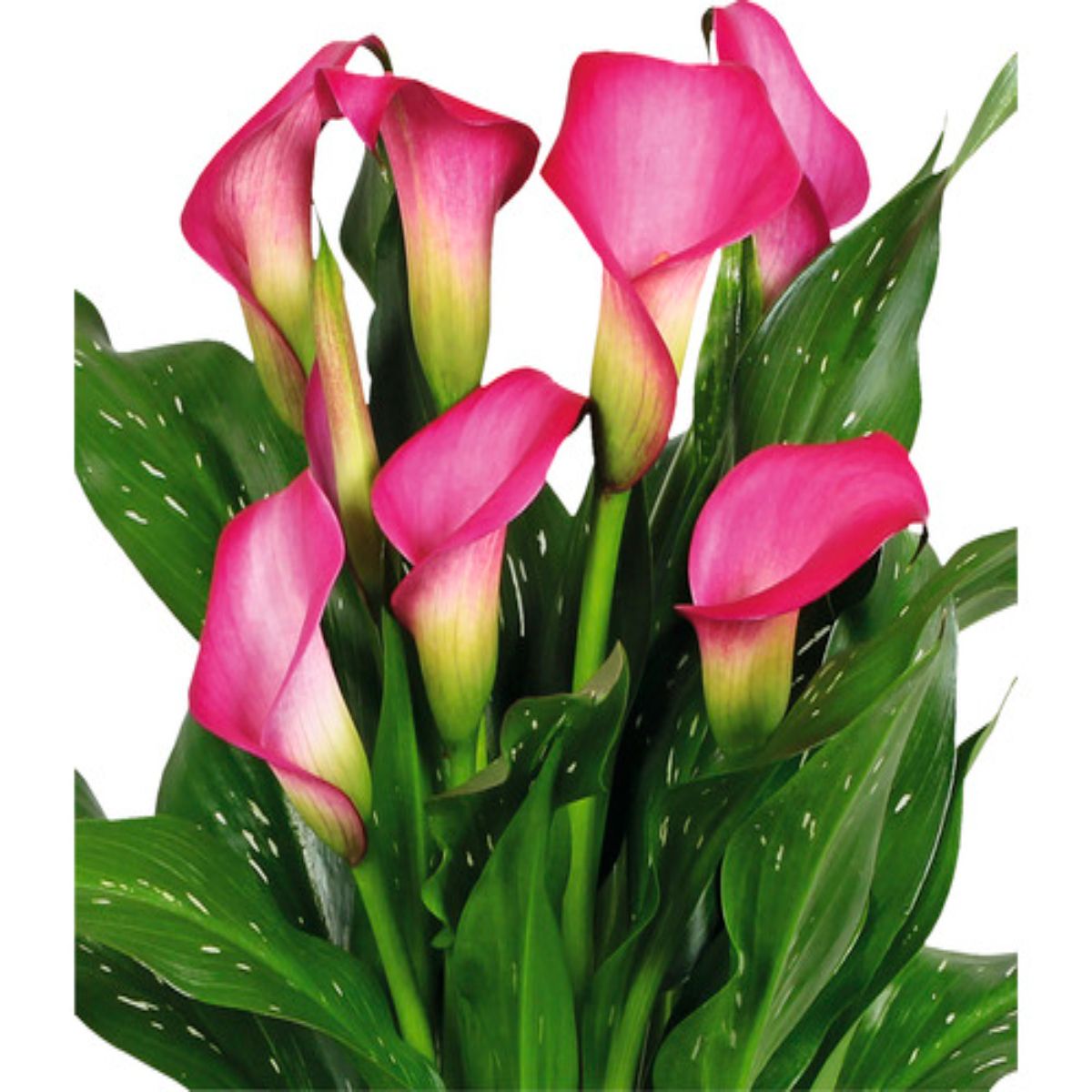 Florile de Zantedeschia sunt cunoscute pentru forma lor distinctivă, în formă de pâlnie, cu petale fine și catifelate, care creează un efect vizual sofisticat și modern. Frunzișul verde intens, ușor lucios, completează perfect aspectul plantei, oferindu-i un aer proaspăt și natural.