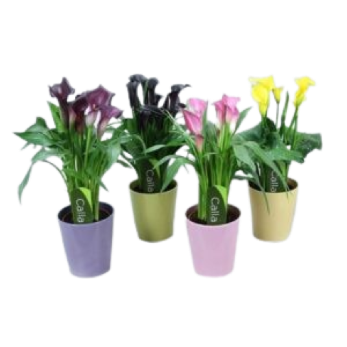 Planta naturala adaugă un plus de prospețime și culoare oricărui spațiu cu această plantă naturală Zantedeschia (Cala) în varianta mix, o alegere perfectă pentru iubitorii de flori elegante și pline de viață. Cu o înălțime de aproximativ 35–45 cm, această plantă se remarcă prin combinația armonioasă de flori în culori variate, precum alb, galben, roz, mov sau crem, fiecare nuanță aducând un farmec aparte.