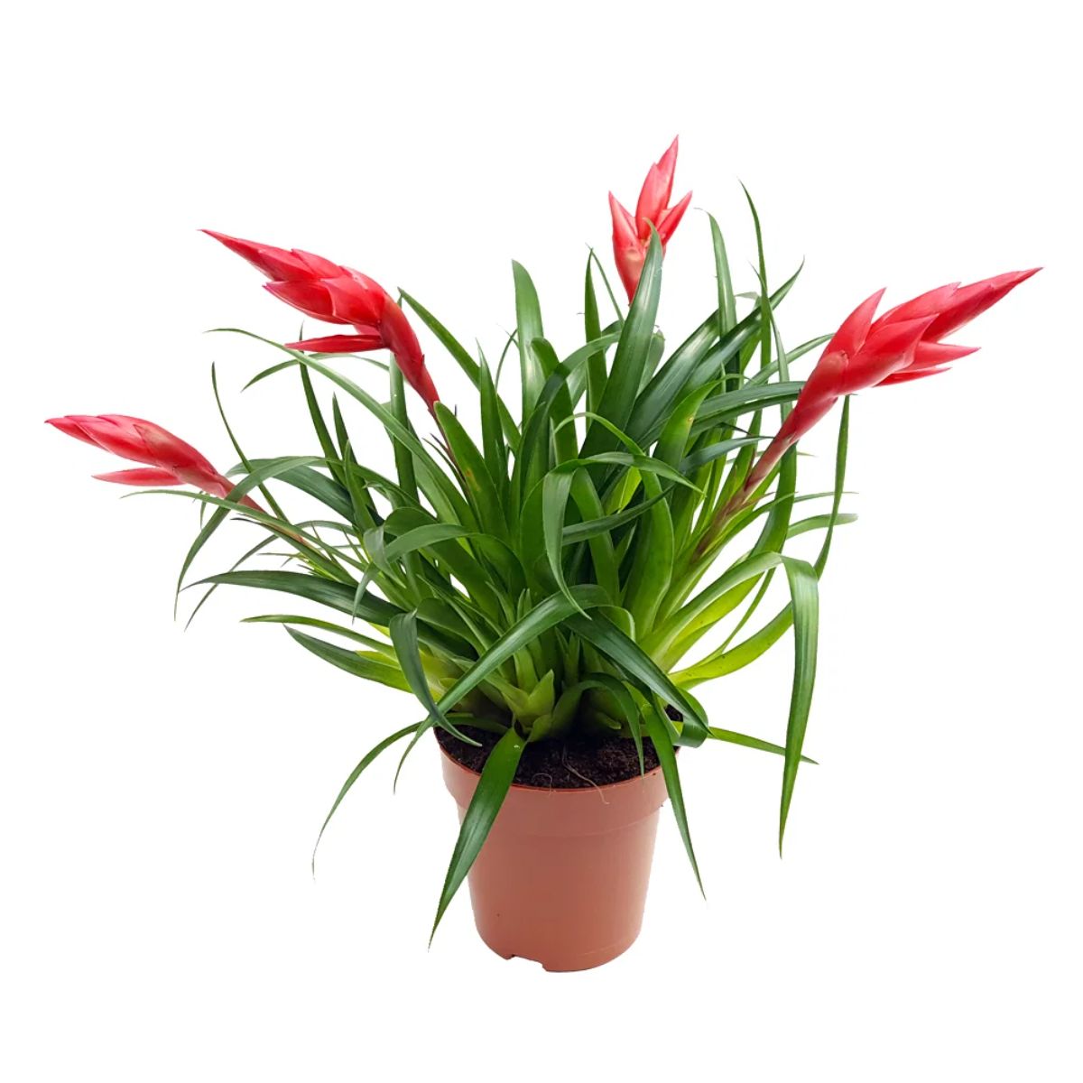 Planta Vriesea multiflower este tropicală spectaculoasă din familia bromeliilor, apreciată pentru inflorescențele sale viu colorate și aspectul exotic. Varianta „mix” oferă o varietate de culori vibrante – de la roșu intens și portocaliu, până la galben sau combinații multicolore – transformând această plantă într-un adevărat punct de atracție în orice încăpere.